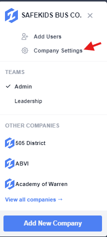 1. Click on your company name in the top left corner of your screen, then click on "Company Settings"