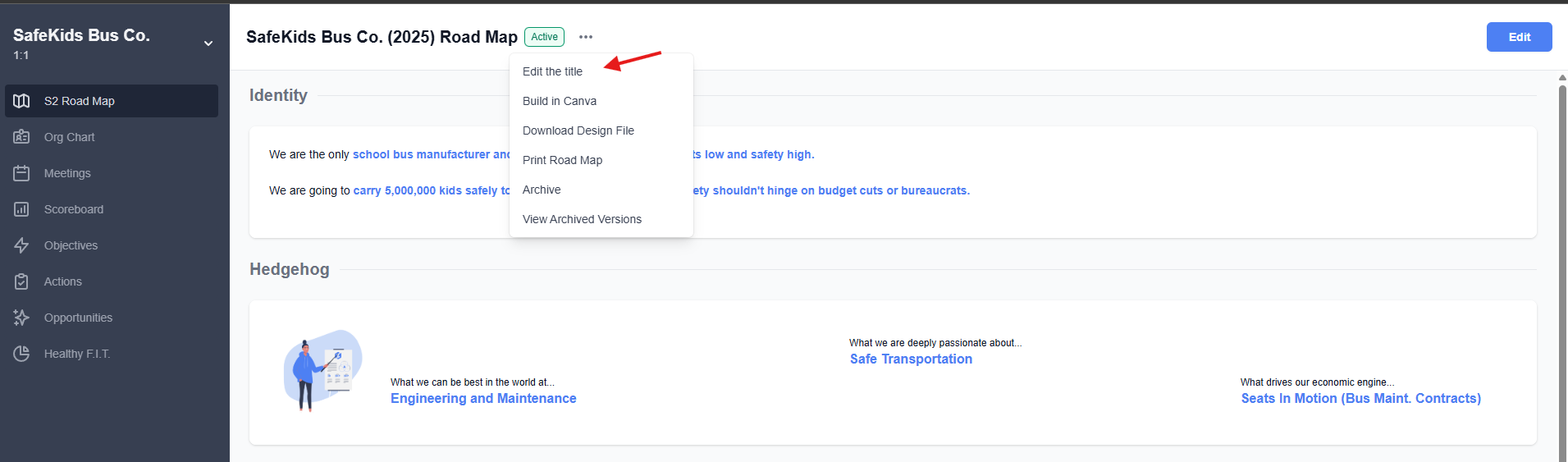 By default, the title edit functionality in S2 Sync is disabled until data has been added to the Roadmap. Once you have entered information, you can easily rename the roadmap using the steps below.